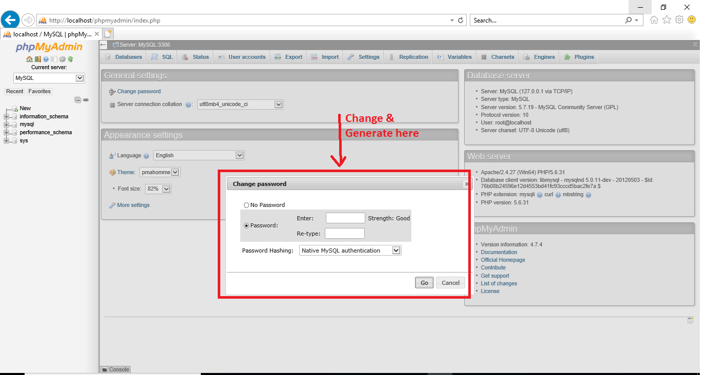 mysql> SELECT Host, User, authentication_string FROM mysql.user; +-----------+---------------+-------------------------------------------+ | Host | User | authentication_string | +-----------+---------------+-------------------------------------------+ | localhost | root | *AD826E9042FC00E5D6E56666CC1D20180AAF5078 | | localhost | mysql.session | *THISISNOTAVALIDPASSWORDTHATCANBEUSEDHERE | | localhost | mysql.sys | *THISISNOTAVALIDPASSWORDTHATCANBEUSEDHERE | +-----------+---------------+-------------------------------------------+ 3 rows in set (0.00 sec) C:\wamp64\bin\mysql\mysql5.7.19\bin>mysql -u root -p Enter password: ************ ERROR 1045 (28000): Access denied for user 'root'@'localhost' (using password: YES)